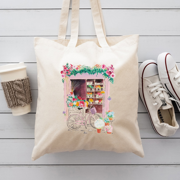 Flower Shop Tote – Ρομαντική Floral Βαμβακερή Τσάντα