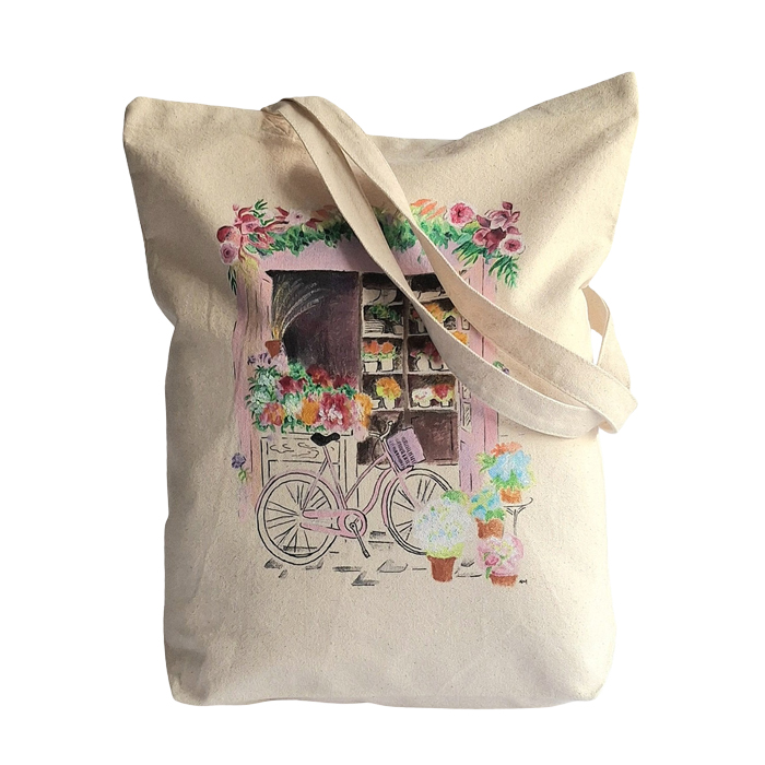 Βαμβακερή τσάντα flower shop 38x42cm, ζωγραφισμένη στο χέρι. Tote bag οικολογική, επαναχρησιμοποιούμενη και ανθεκτική, ιδανική για ψώνια, βόλτες και καθημερινή χρήση με floral αισθητική.